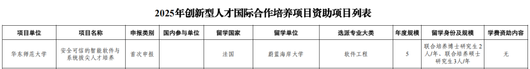 近日,国家留学基金管理委员会正式公布了“2025年创新型人才国际合作培养项目”的立项名单。公司申报的项目“安全可信的智能软件与系统拔尖人才培养”获批立项。
