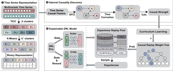 在深度强化学习领域,自动驾驶等安全关键应用受困于深度强化学习(DRL)的黑盒特性与可解释性缺失,难以获得用户的充分信任。同时,传统经验回放方法虽提升了样本效率,却未能有效捕捉训练数据中的因果关系,导致训练过程复杂且解释性不足。课题组创新性地引入了时间序列表示与因果推理的融合机制。通过独特的多元时间序列表示方法,ERCI能够精准提取可解释的时间序列因果因素(TSCF),并将其内部因果关系作为DRL训练中经验回放的核心准则。实验结果表明,ERCI不仅能生成符合人类认知的解释,还显著提升了样本效率,展现出卓越的有效性与普适性。
