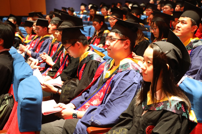 拨穗正冠,寄托着老师们的期待与希冀,也象征着同学们开启新的人生启程。2023届毕业生共464人,其中获得博士学位16人,硕士学位272人,学士学位176人。2020-2022届毕业生受邀返校参加毕业典礼,弥补未能参加线下毕业典礼的遗憾。公司领导及学术、学位委员会代表等为毕业生们拨穗并颁发了学位证书。