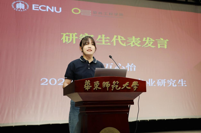 研究生新生代表万心怡表示,希望自己能不忘初心,凭借笃信与执着,向着钻研的方向奋勇前行。在前往云南支教时,她一直在思考自己的未来,希望在未来迷茫之时,能想起曾经追求纯粹的自己,不忘初心、奋勇前行。