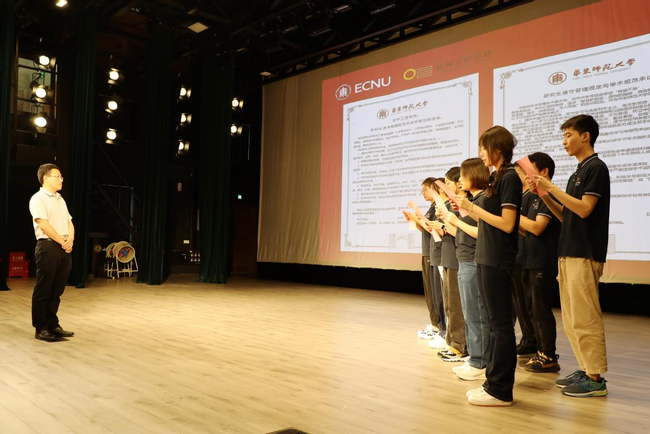 新生代表们做遵守管理规定与学术规范承诺,公司副经理邓玉欣代表公司见证承诺。