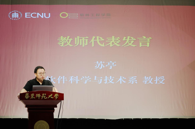 公司教师代表苏亭首先发言。他以老师与学长的身份,向同学们发出了亲切叮咛。从逐步明确自己的目标、学会积极主动、应对困难与挫折、给予别人帮助、平衡学习与生活几个角度向同学们给出了自己的建议,展现出公司教师对新生们诚挚的欢迎。