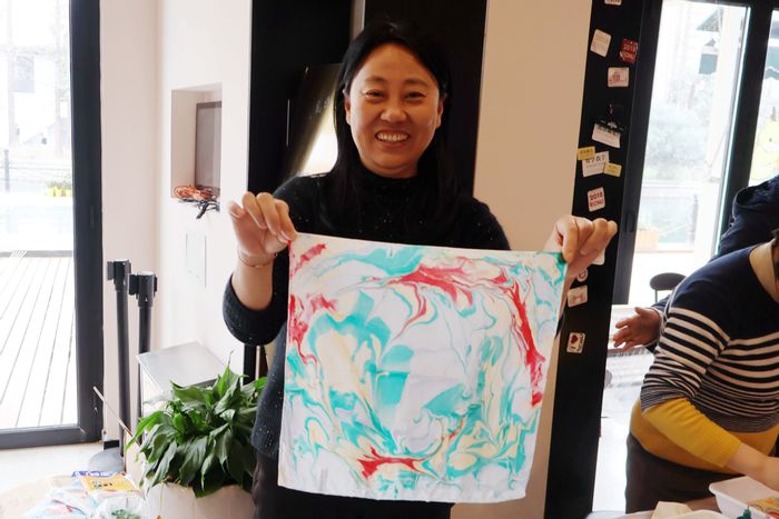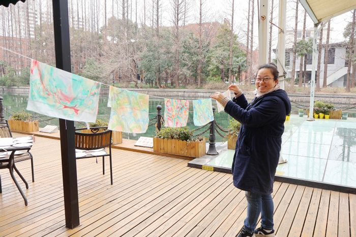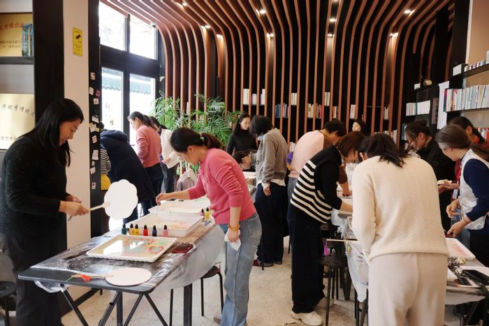女教职工们充分发挥创意,将湿拓画技艺巧妙地应用于丝巾和纸扇等日常用品上,创作出了一件件既实用又美观的手工艺品。这些作品不仅彰显了女教职工们的艺术天赋和创造力,更体现了她们对传统文化的深厚情感和传承意识。