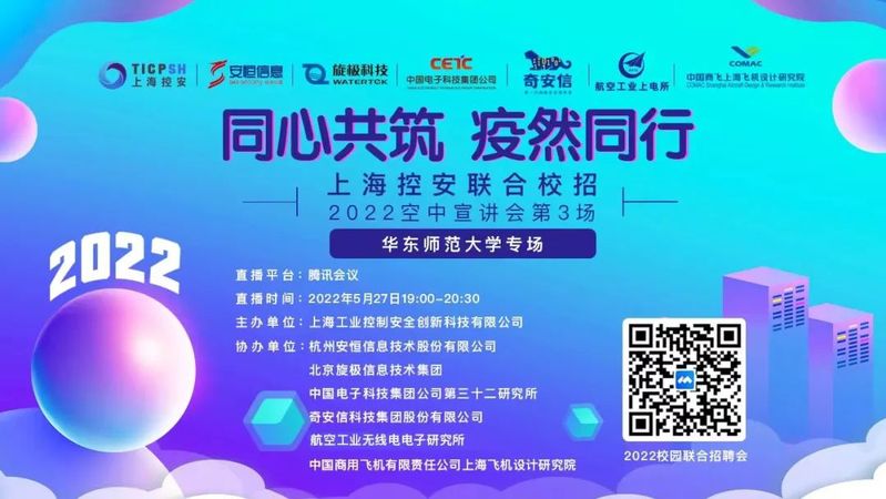 目前,公司与上海控安已联合开展了3场“2022空中宣讲会” 就业招聘活动,切实为广大毕业生带去更高效便捷的就业服务,有效保障了毕业生与用人单位的供需对接。