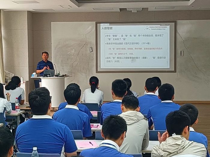 公司教授陈仪香在随后的讲座中,以其深厚的学术底蕴和独特的视角,为同学们揭开了人工智能的神秘面纱。他以浅显易懂的语言,生动地阐述了智能的本质,探讨了人类智能与人工智能之间的相似之处及其内在联系,带领同学们穿越了人工智能的发展历史,剖析了其在现代社会中的现状和面临的挑战。他的讲座不仅见解独到、思想深邃,更以其生动有趣的表达方式赢得了现场同学们的热烈掌声,激发了他们对人工智能领域探索的浓厚兴趣。