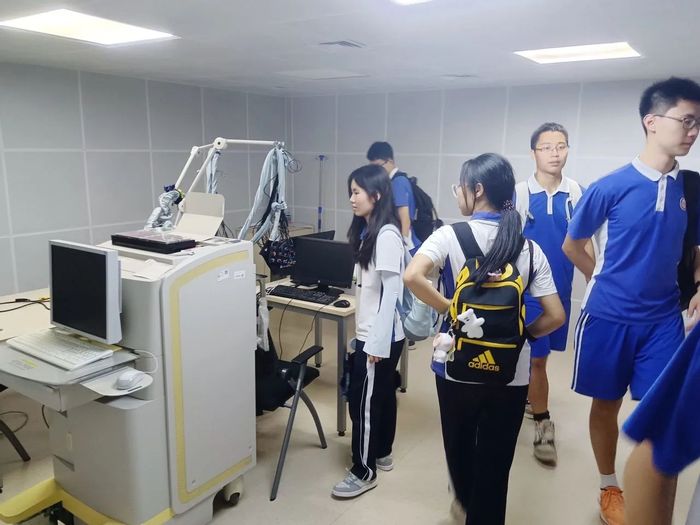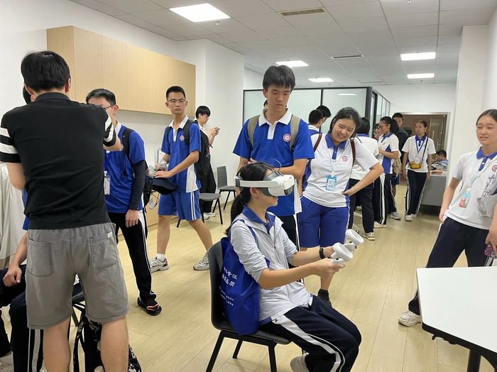 在理科大楼B219和B213教室,红岭中学的师生们参与了一场以“机器人及智能系统实验室”为主题的参观体验活动。来自公司的师生们在现场展示了数个生动有趣的科研项目,包括智能机器狗、VR技术与AR技术等。同学们还亲身体验了VR与AR设备,感受更为多元与有趣的世界。