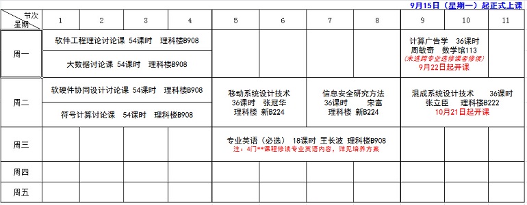 2014-2015第一学期研究生课程安排详见下表或附件。