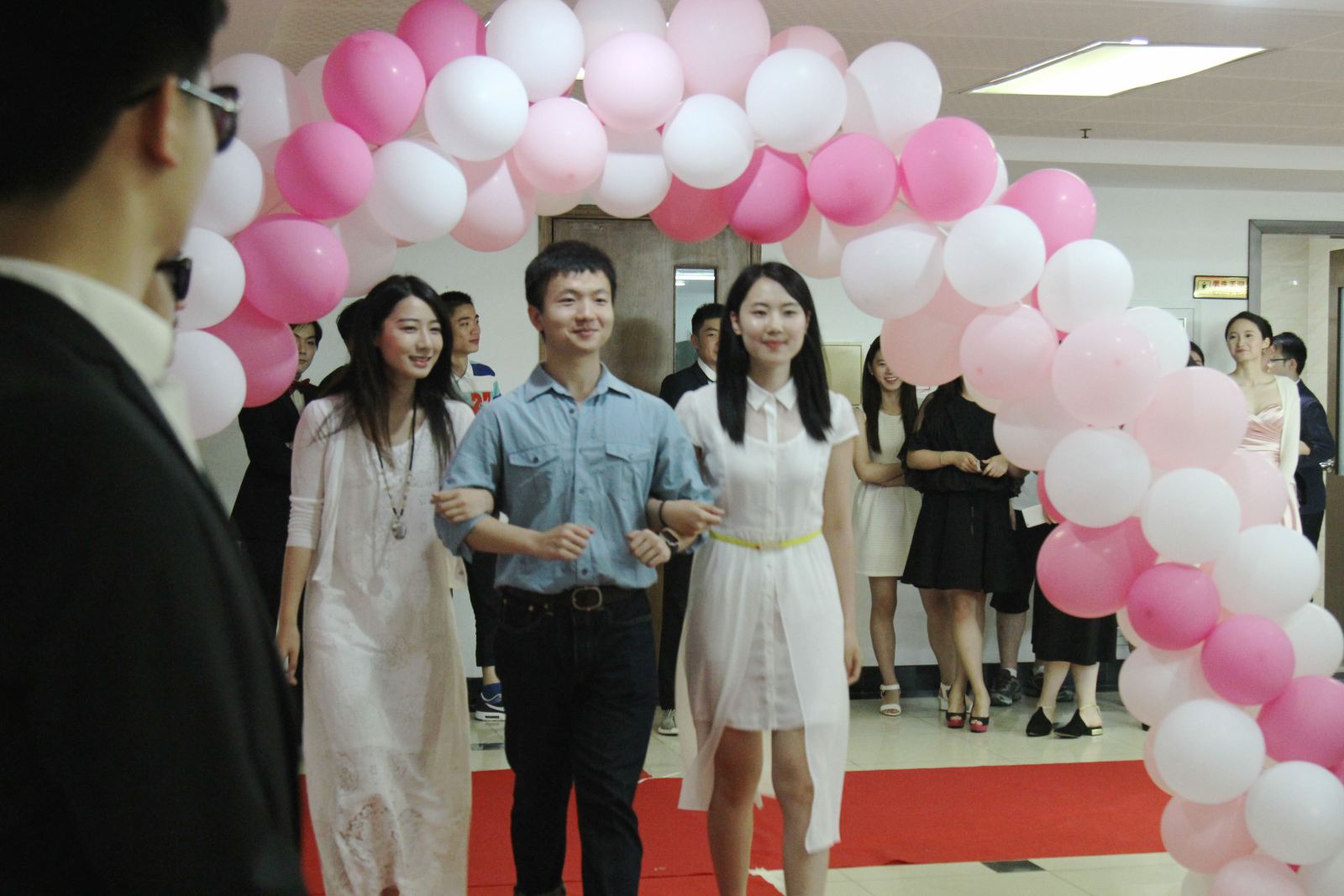 今年晚会的主题是“秒速一六季”,既点明这是2016年的毕业季,又寓意时光匆匆,本科毕业生转眼走过的十六个季节。晚会前,主办方别出新意在大活入口用气球搭起了拱门,并在地上铺上了红地毯。男女同学们身着靓丽服装,手挽手走入会场,并在签名板上写下自己的名字,颇有一种明星走红毯的感觉。