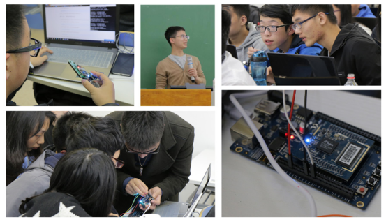 随后的操作环节,同学们小试身手,通过代码的编写,控制开发板上小灯的亮灭。经过一段时间的适应摸索,某大二嵌入式方向员工顺利点亮小灯,并上台展示。在第一个实践环节成功点亮小灯后,同学们各尽其能,利用手中的Ruff套件,开发出各具特色的“产品”。公司员工极强的学习能力也获得了公司负责人的肯定。