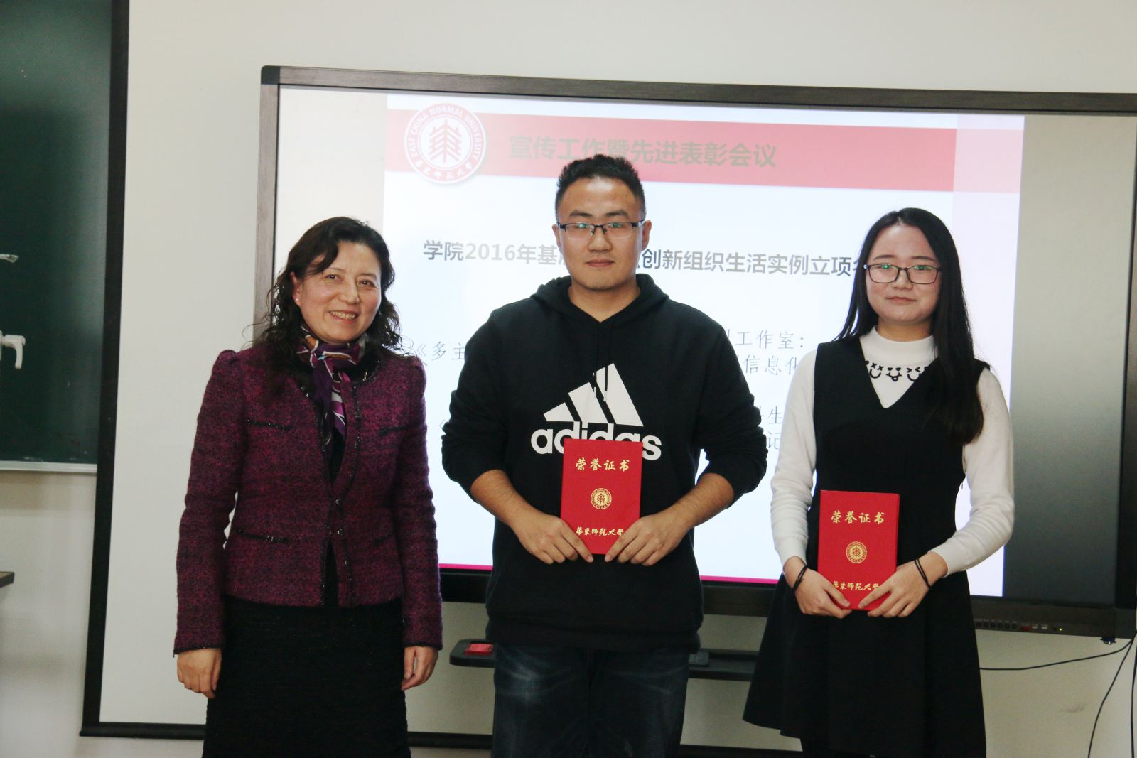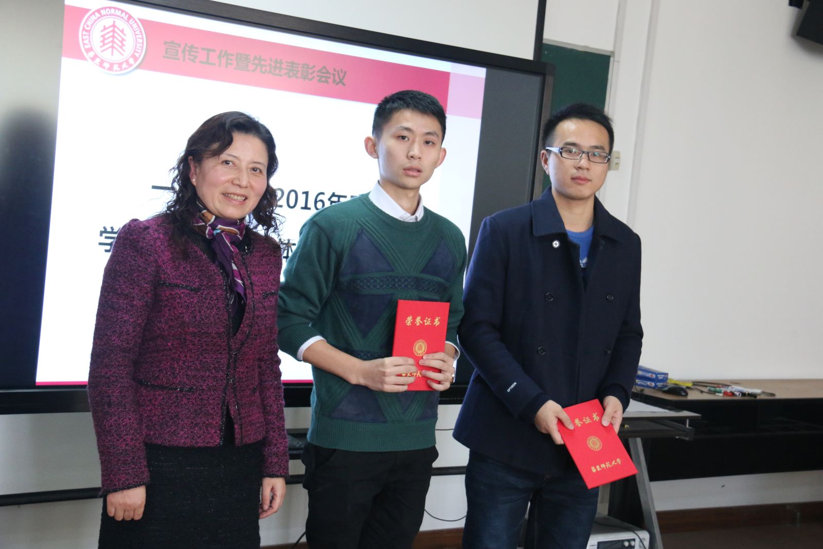 洪燕宣读了公司党委表彰决定,由李恺书记为获奖个人和集体颁发荣誉证书。朱丹等五位同志荣获宣传工作先进个人,公司团学联及研究生会信宣中心荣获宣传工作先进集体。另有两个员工支部项目获公司2016年基层党组织创新组织生活实例立项。