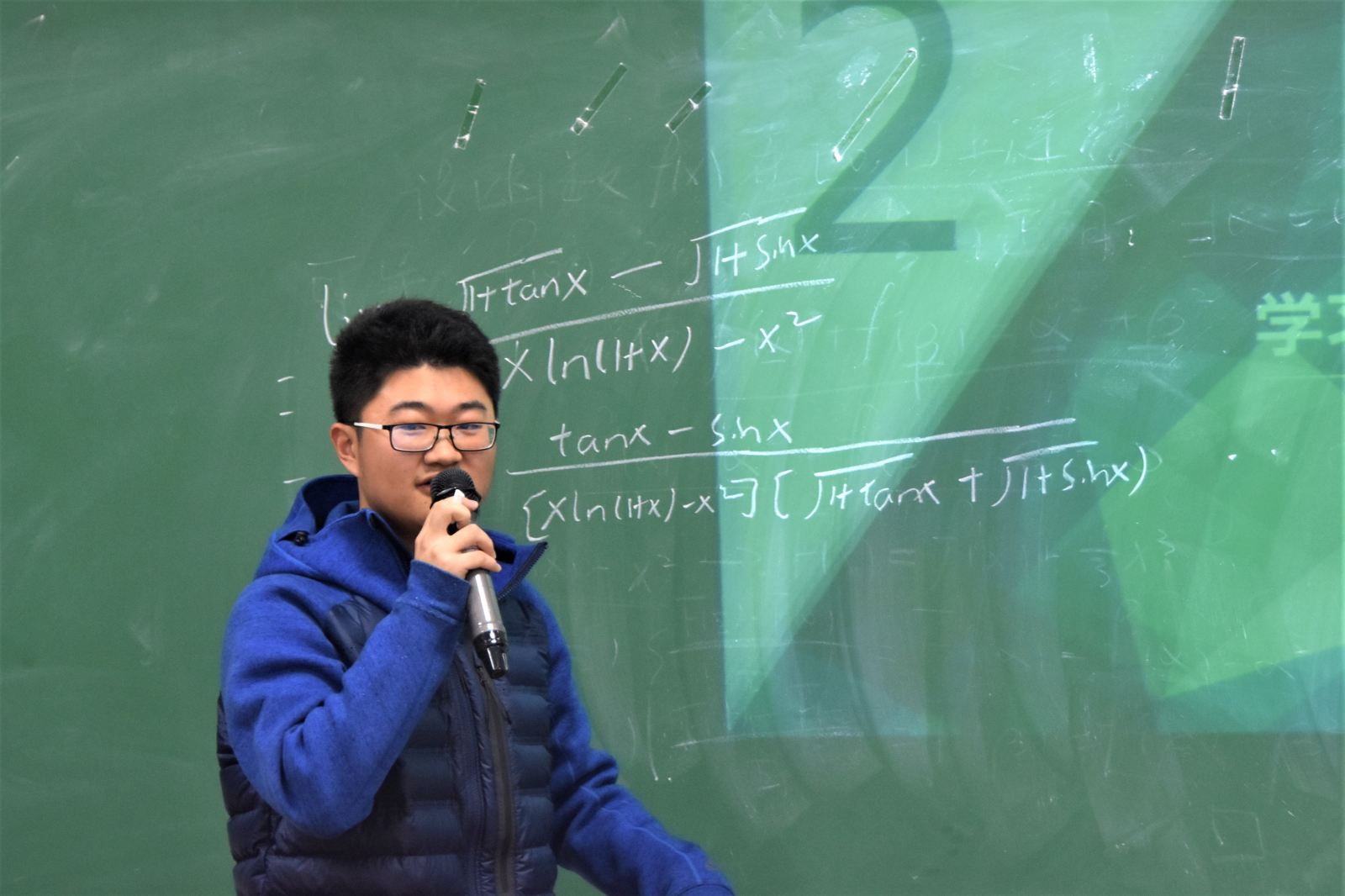 沙龙伊始,三位同学逐一上台讲分享了各自学习数学的方法。曹威杰同学结合一个证明题目,对他的数学学习方法“三步走”策略进行详细解说;陈杰同学提出老员工要学会独立思考、学数学要仔细理解书本知识和认真做课后习题、理论要和实践相结合;周华驰同学以高数课后的一个习题为例介绍了数学计算的一种算法。