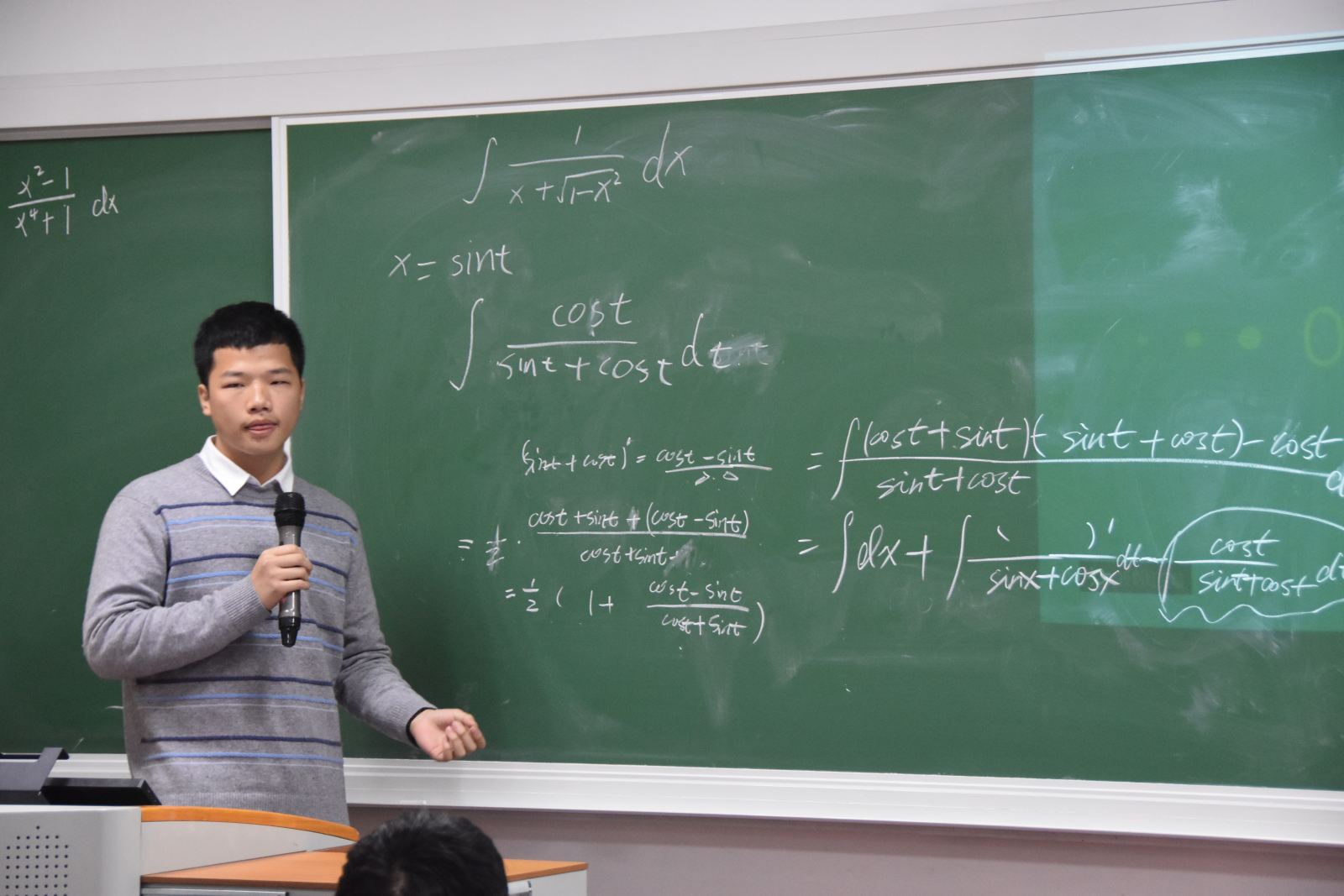 沙龙伊始,周文涛和李明松两位同学与大家分享在做题中的思路和困惑,刘步、周哲诚等几位同学都提出了各自对题目的看法。期间,朱老师就解题的步骤和方法的使用给予了及时的指导与点评。沙龙最后,朱老师为本期学业指导沙龙作了一个总体的评价,他指出不论是什么样的解题思路,都不是平白无故产生的,都是通过不断的试错和做题的实战中获得的。他对同学们主动思考、积极参与交流非常认可,进而强调练习对高数学习是非常重要的,只有见的题型多了,才能掌握解题的一些规律和技巧,才能适应题目的多变性。