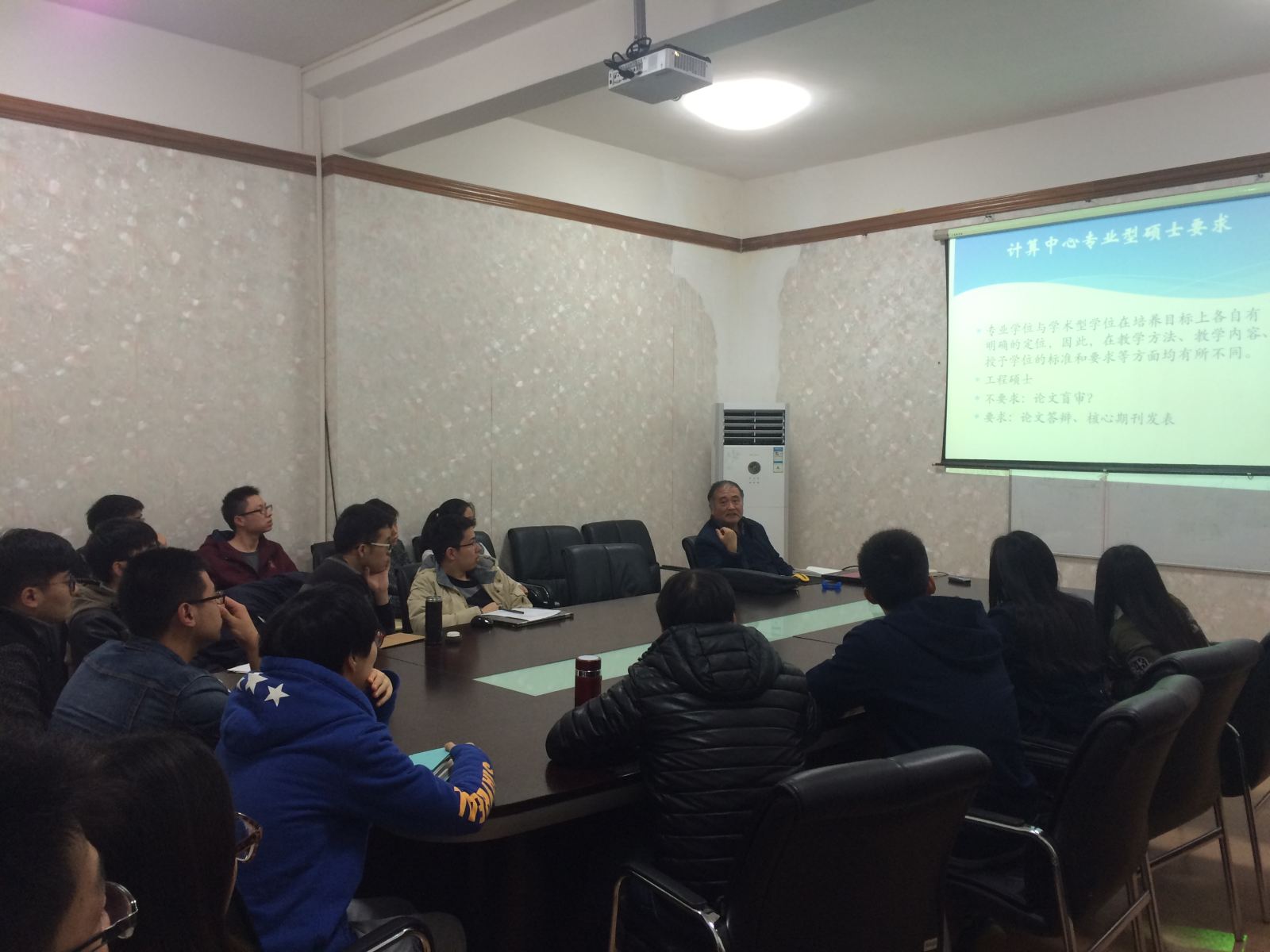 2016年12月7号下午三点,公司计算中心在计算机楼会议室214,公司关工委王行恒教授为公司2016级全体研究生带来一场“立足自身发展,打好坚实基础——研究生阶段学习漫谈”的精彩讲座。计算中心主任郑骏教授应邀参加此次活动,本次讲座由计算中心团支书赵红主持。