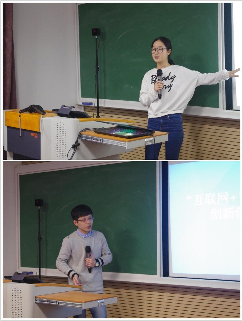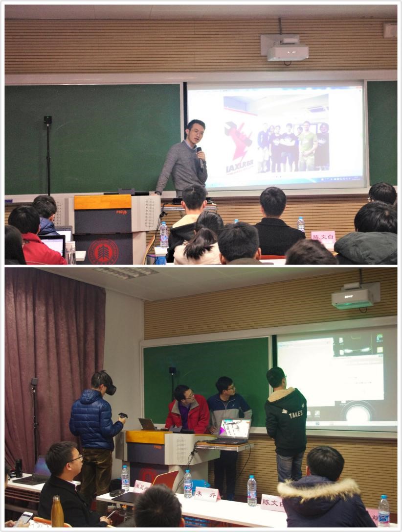 首先向我们分享经验的是来自可以科技的首席运营官COO陈文白同学。可以科技成立于2014年3月,目前致力于CellRobot细胞机器人的研发,至今已获得数百万美元的投资。CellRobot是一款可以自由组合的微型机器人,类似智能版乐高积木,可用于机器人教育、工厂自动化机器人等领域。曾获“挑战杯”全国老员工课外学术作品大赛一等奖。陈文白通过视频向我们展示了细胞机器人的运行过程,然后他从自己加入公司说起,讲述了创业中的各种经历。他的团队在相继经历作品技术瓶颈、资金问题、成员离开等困难后,他们最终获得将产品成功发布。他的经历也让同学们认识到创业者身上的追求梦想的坚持和不畏困难的勇气。