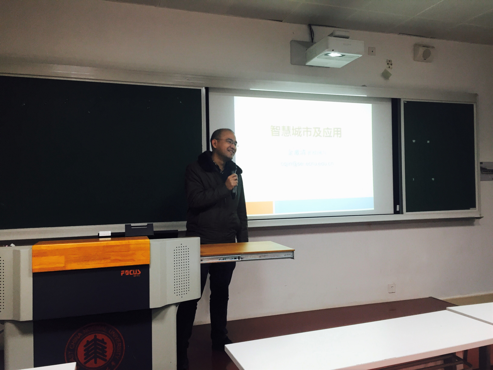 讲座伊始,金澈清教授以幽默亲和的风格,讲述自己求学时的经历,鼓励大家努力学习,树立永不言败的科学精神,让同学们坦然面对学习过程中遇到的困难。他提到:学习不单是机械的重复,更应包含着对知识的理解和运用。随后,老师娓娓道来智慧城市的概念,定位技术的发展,基于位置的服务(路况报告,商铺发现,优惠券推送:分析用户购买行为,发送优惠券,促进销售等)等基本内容。用通俗易懂的方式为我们展现了时代发展的轨迹,用深入浅出的语言带我们领略了科技发展的魅力。便利的智慧生活方式,精确的海量数据分析,无一不深深吸引着大家。