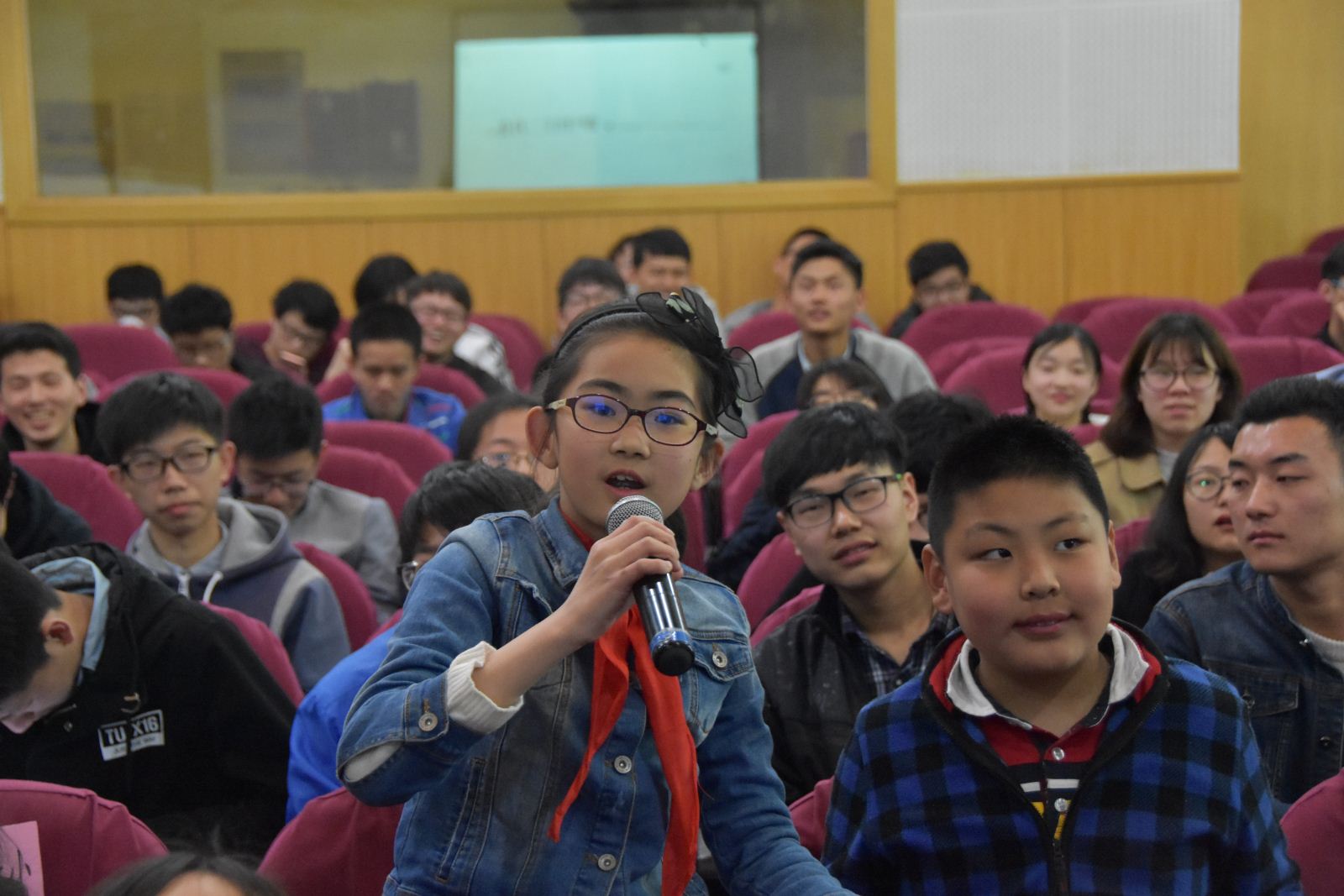 来自华师大附小四年级一班的三十多位小朋友也来到了诗词大会的现场。他们饱含热情,不断高喊出答案,现场氛围十分活跃。在第二轮比赛开始之前,主办方专门设置了小朋友互动环节,他们积极抢答现场题目,充分展示了小朋友们对古诗词的喜爱与孜孜不倦的学习精神,而他们的诗词知识储备甚至让现场老员工们自愧不如。