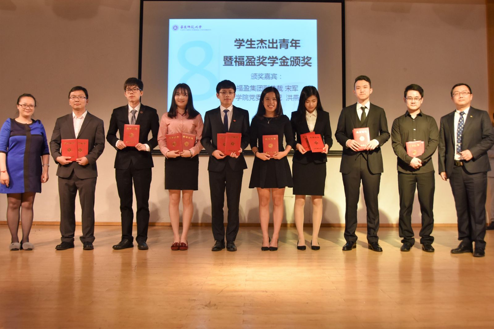 最终陈文白、陈诗韵、朱政、檀彦超、陈子溦、王路遥、周俊龙、谢斌8位同学脱颖而出,荣获“员工杰出青年”称号和“福盈奖学金”。朱柯舟、鲍勇翔、雷予斯、王晓桐、徐思远、杨乐、杨鑫林7位同学获得了“员工杰出青年”提名奖,檀彦超、陈诗韵、王晓桐三位同学获得了“最佳人气奖”。