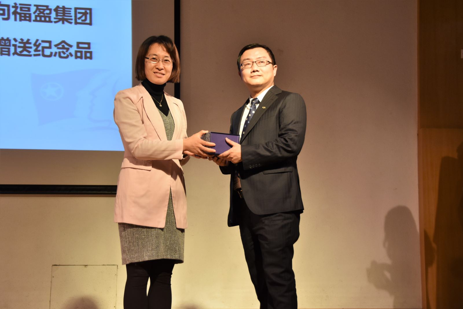 图13、公司副经理王晓玲向福盈集团赠送纪念品