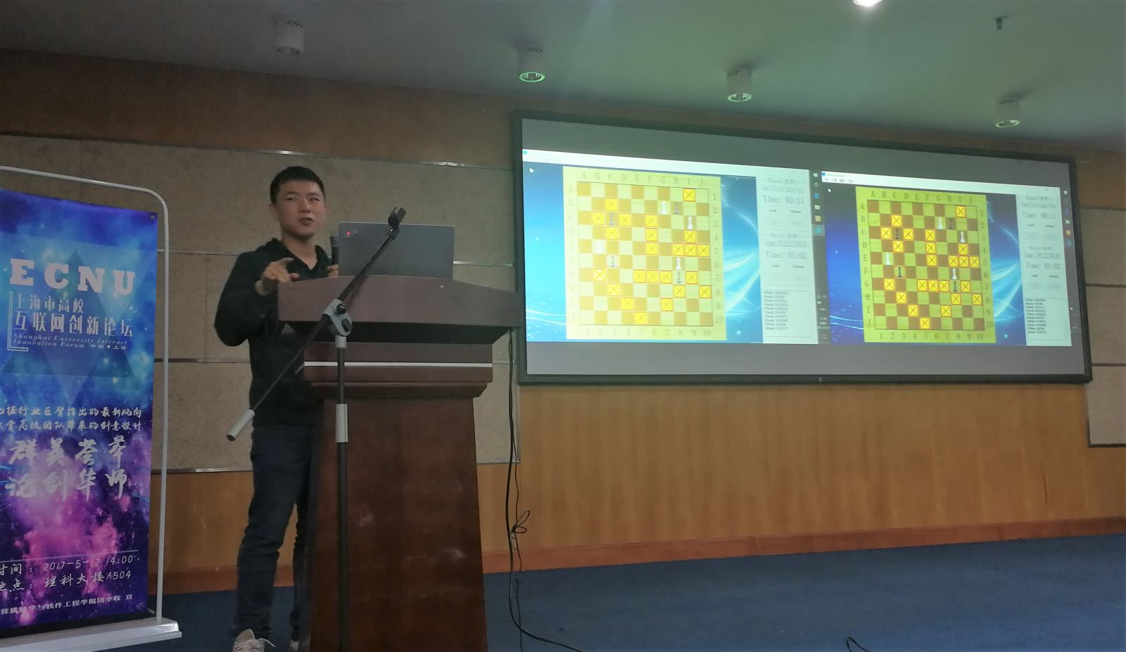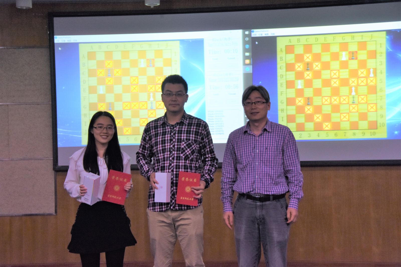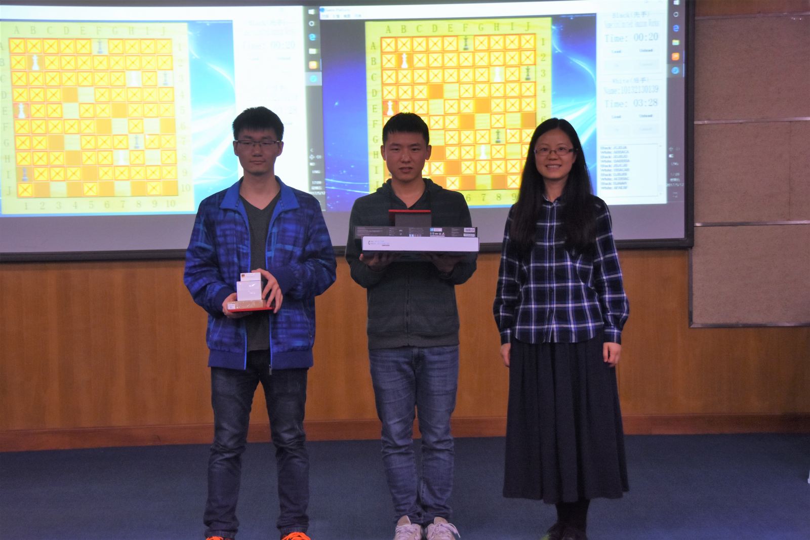 在各大高校优秀项目倾情展示过后,304am永利集团首届趣味棋AI大赛举行现场决赛。此项赛事由计算机与软件公司科技创新协会首次举办,比赛采用亚马逊棋(详细规则可参考/Data/View/2508)。同学们用编写的人工智能程序现场对抗。最终周众欣的人工智能程序以2:1战胜周锐,夺得了304am永利集团首届趣味棋AI大赛的冠军。