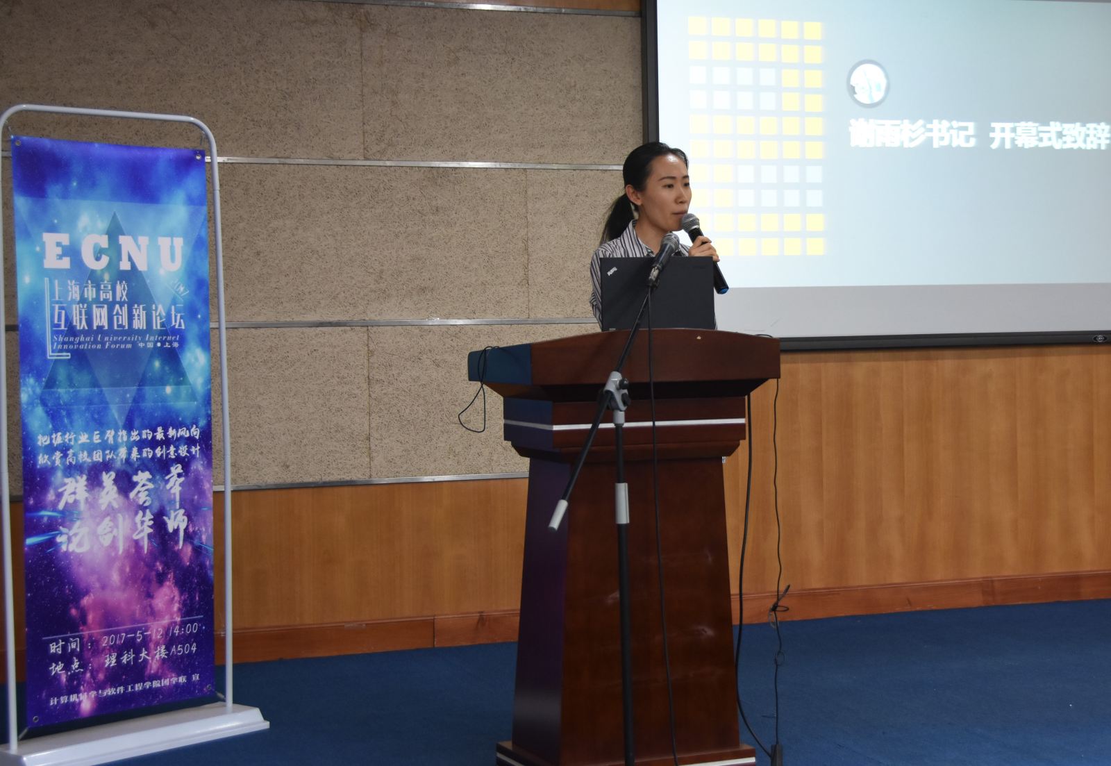 校团委副书记谢雨杉随后发表致辞,高度肯定和赞扬了本论坛的意义,对活动今后发展充满了期待,并鼓励计算机专业的同学们在我国深化改革的时代中能够引领创新潮流,成为社会栋梁。