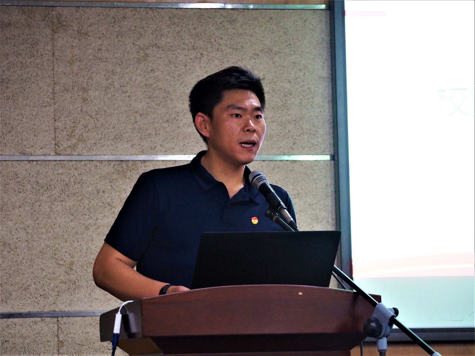 大会的最后团委书记朱丹老师发言,他肯定了上一届委员的工作,从工作、民主、热情、服务、引领五个方面向大家阐释如何做好青年领袖,为员工服务工作建设献出自己的一份力。并对未来团学联的发展提出了更高的期望与要求。