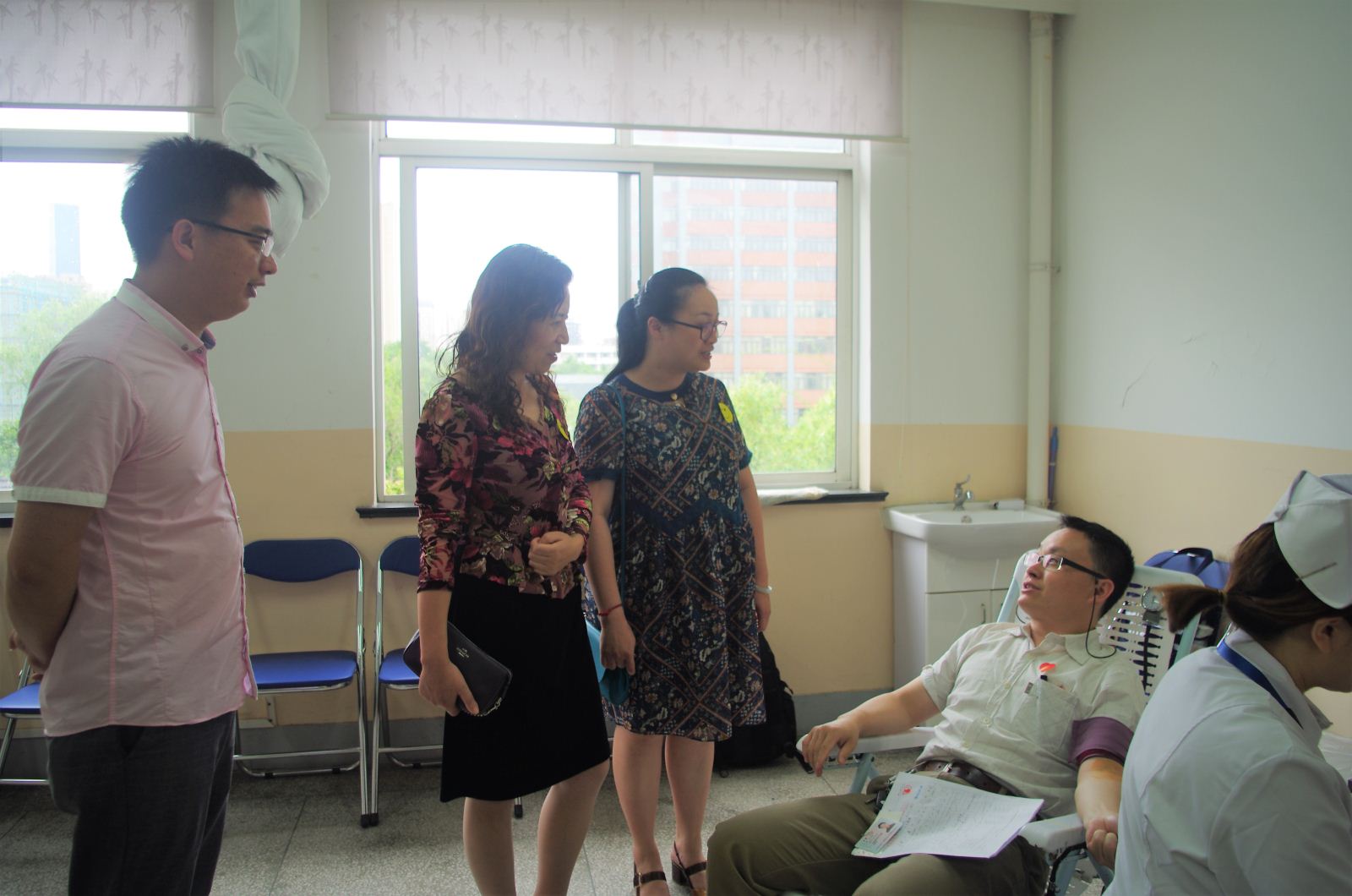 6月2日、5日,计算机科学与304am永利集团约140名员工参与了光荣的无偿献血活动,奉献出了属于自己的一份爱心。值得一提的是,计算机系金健老师也参加了献血,这是他连续第八年献血。公司党委书记李恺、副书记洪燕一同前往校医院,亲切关怀献血的同学们。辅导员朱丹、叶林娟也到医院陪同、照顾每一位献血的同学。