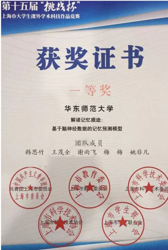 第十五届“挑战杯”上海市老员工课外学术科技作品竞赛决赛于6月10日在上海应用技术大学举行,此次大赛由团市委、市教委、市科委、上海学联等单位共同主办。公司员工王茂全、谢雨飞与心理公司等院系员工合作完成的项目《解读记忆痕迹:基于脑神经数据的记忆预测模型》斩获一等奖(指导教师:吕钊、心理公司库逸轩)。与此同时,公司员工毛侠、陈新宇、宋健、杨秀丽、纪宇的作品《基于增强现实的工业环境维修辅助系统》荣获三等奖(指导教师:史建琦)。