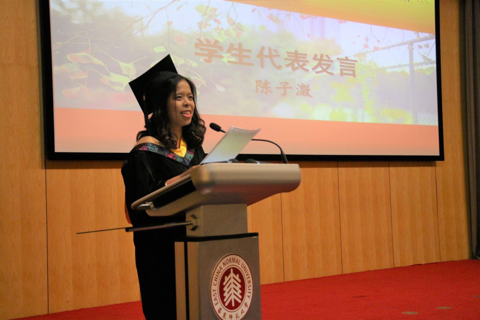 图8、本科毕业生代表陈子溦发言