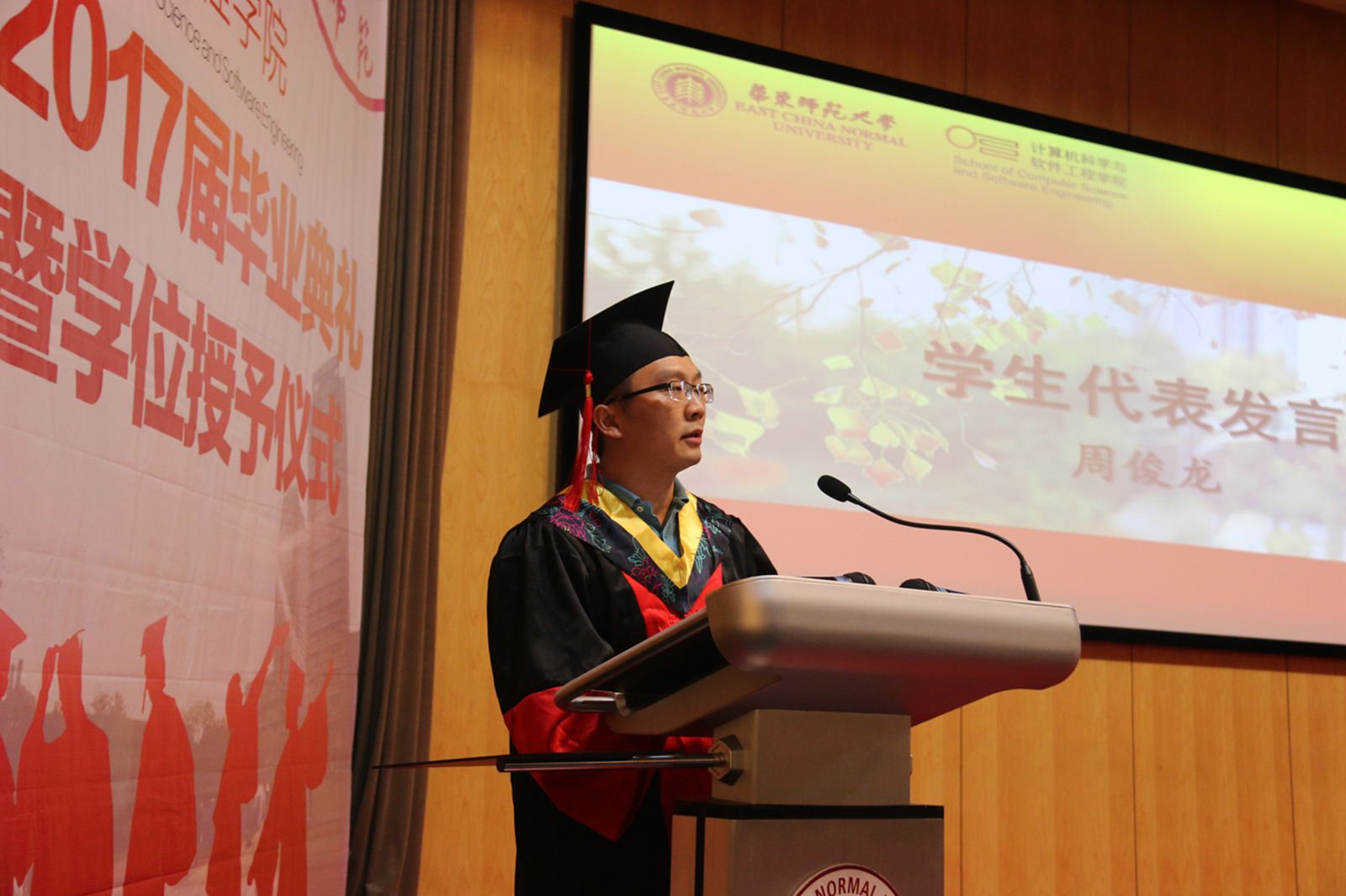 图9、研究生毕业生代表周俊龙发言