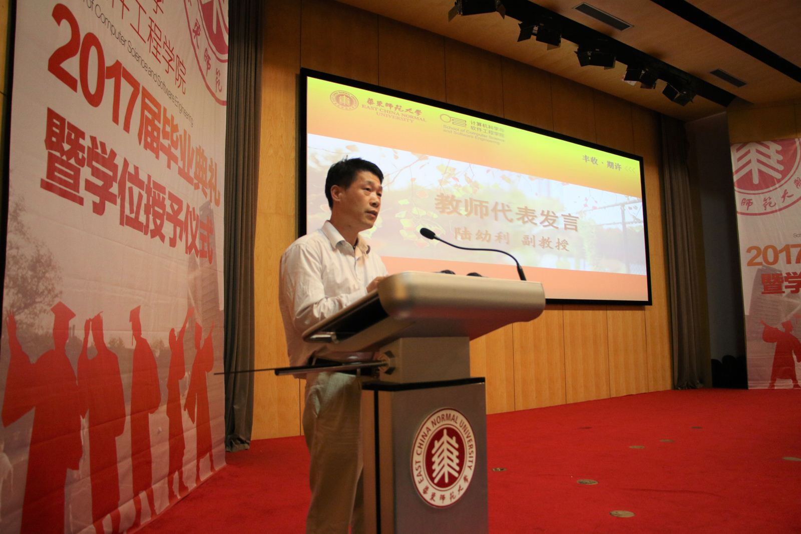 公司计算机系陆幼利副教授荣获“员工心目中最优秀教师”称号,作为教师代表他对本届毕业生提出了殷切的希望,希望同学们能够秉持敬畏之心、好奇之心、批判之心面对未来的工作和学习。人们因为“敬”而效仿,因为“畏”而上进,只有怀揣着好奇之心才能不断创新,拥有思辨的能力,并承担起社会发展的重任。