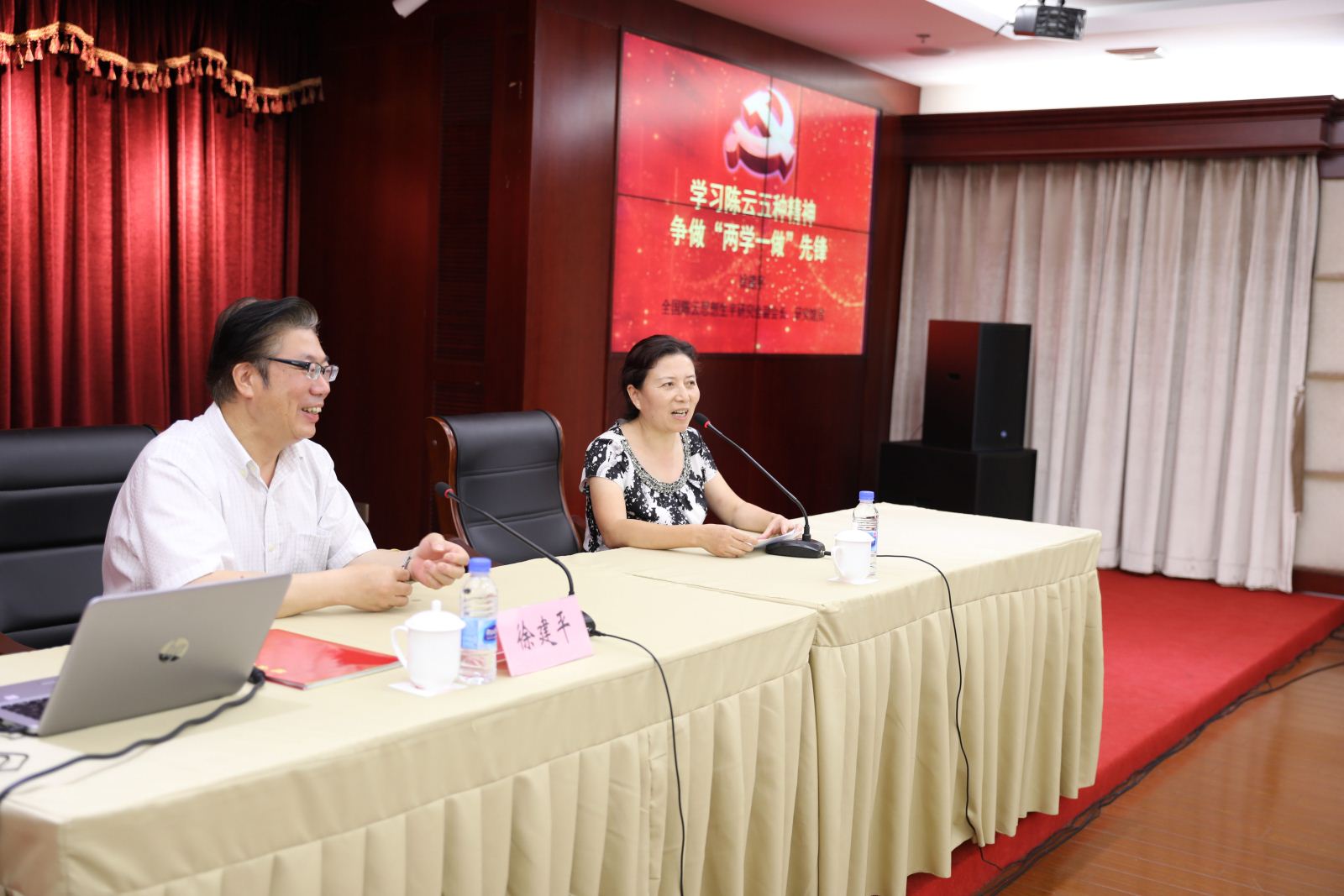紧接着,党员们共同聆听了由全国陈云思想生平研究会副会长、全国陈云纪念地理事会理事长、研究馆员徐建平馆长主讲的微党课《学习陈云五种精神,争做“两学一做”先锋》。徐馆长从陈云同志的生活和工作细节入手,通过向大家讲述陈云坚守信仰、党性坚强、一心为民、实事求是、刻苦学习“五种精神”的内涵,引领党员们一起走进了一代无产阶级革命家简朴和不懈奋斗的一生:他加入中国共产党,从此自觉“此生已非昔比,今后要专干革命”——这是坚守信仰的精神;他一生粗茶淡饭、轻车简从——这是党性坚强的精神;他说“我们做工作、制定政策,要用90%以上的时间用来调查研究”——这是实事求是的精神;他曾在上世纪80年代关心北京大白菜“烂菜”的问题——这是一心为民的精神;他只读过小学,但能在长期实践中坚持不懈地刻苦学习,从而具备了很高的思想理论水平和解决问题的能力——这是勤奋学习的精神。在徐馆长看来,“老一辈无产阶级革命家的思想风范,是当今‘两学一做’的生动教材,对全面从严治党向基层延伸、提升党员的思想境界,有着极为深刻的现实意义”。徐馆长深入浅出的讲述,不仅让党员们全面而深入地了解了一代伟人的事迹,更是让大家从一个国家领导人成长的角度再一次学习了党的历史。
