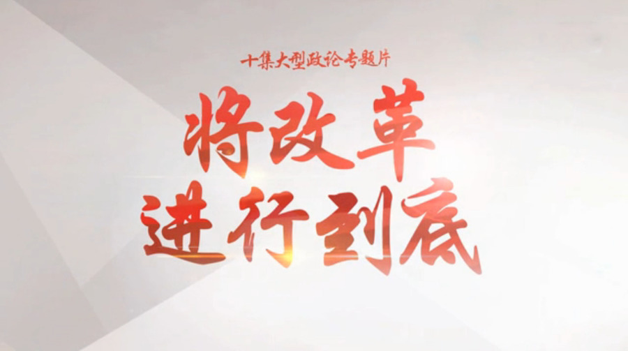 政论专题片《将改革进行到底》开播后,引发了社会各界的广泛关注。它是由中共中央宣传部、中央全面深化改革领导小组办公室组织指导,由中央电视台承担制作的大型政论专题片。该片分别从经济体制、深化改革、社会公平、文化自信、生态文明、军事建设等方面入手,紧紧围绕习近平总书记系列重要讲话精神和治国理政新理念新思想新战略,讲述了习近平总书记带领我们全体中国人民攻坚克难、砥砺前行、扎实推进全面深化改革的故事。