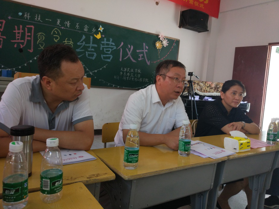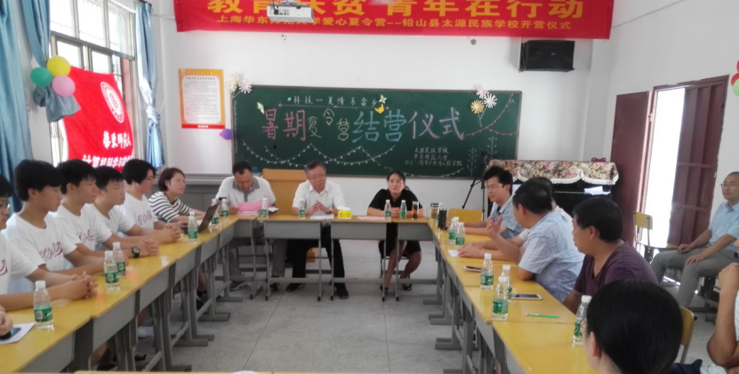 铅山县政协副主席雷丹首先对本次暑期支教的志愿者师生表示感谢,她认为这次的夏令营让员工们接触到很多新鲜的事物,以后这类的活动要多加强,让员工们能够接触到外面的世界,能够接受老员工哥哥姐姐的指导和帮助。县人大副主任黄永诚指出这次的支教不仅给孩子们带来了知识,更多的士希望和信心,从而能看到自己人生的更多可能性。铅山县教育局长陈柯表达了对老员工参加暑期支教的赞同,他觉得这样的实践形式无论是对老员工还是当地的员工,都会有收获到课堂中所无法给予的内容和经验。太源畲族乡书记徐饶英结合十年前刚刚毕业时候的经历,分享了刚刚参加完夏令营结营仪式的感受,支教志愿者对孩子们寄语的部分让她感动“外面的世界很大,我们要多出去走走”,她希望未来志愿者们继续支持服务乡村教育。太源民族公司董事长梁思福在感谢上饶市市委、各级教育主管部门之余,对本次暑期支教工作给予了肯定,认为带给公司的不仅是先进的教育理念,还有此次支教队伍的良好精神面貌和认真负责的工作态度。
