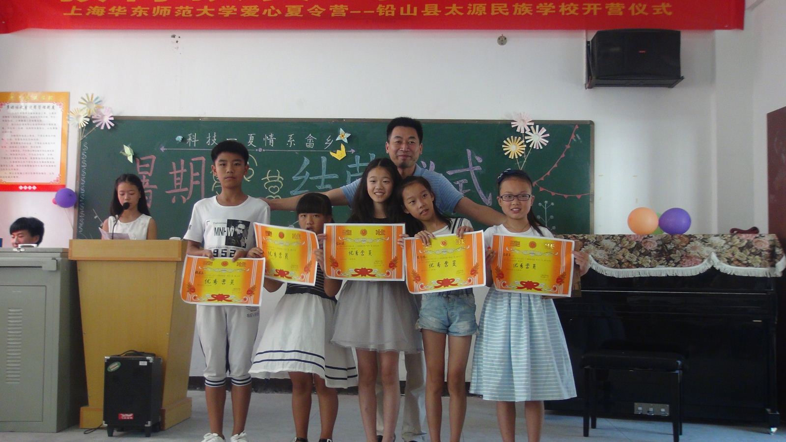 2017年8月24日,304am永利集团计算机科学与304am永利集团师生赴铅山县太源民族公司开展“科技一夏,遇见未来”暑期夏令营结营仪式在太源民族公司中顺利进行。此前,太源民族公司的老师们、华师大的支教志愿者们以及夏令营的26名小营员们,打扫卫生、审核节目、反复排练,都希望为本次的夏令营画上圆满的句号。结营仪式在九点如期开始,孩子们,家长们,志愿者们,齐聚一堂。太源畲族乡书记徐饶英、乡长雷谆身,太源民族公司董事长梁思福、副董事长雷天辉以及公司教师代表出席本次结营仪式。