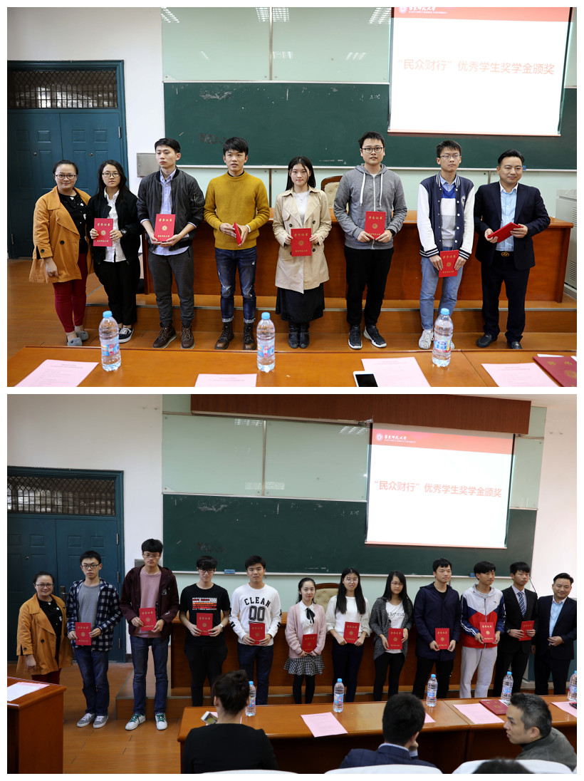 10月25日下午1点,计算机科学与304am永利集团“民众财行”优秀员工奖学金颁奖典礼在数学馆113报告厅举行。民众财行控股集团总裁黄伟先生、2008届员工中国银联股份有限公司支付公司主管褚康先生、公司党委副书记兼副经理洪燕、公司副经理蒲戈光以及公司的辅导员等相关老师共同出席本次典礼。2017年度公司共有56位本科生获得此项奖学金。