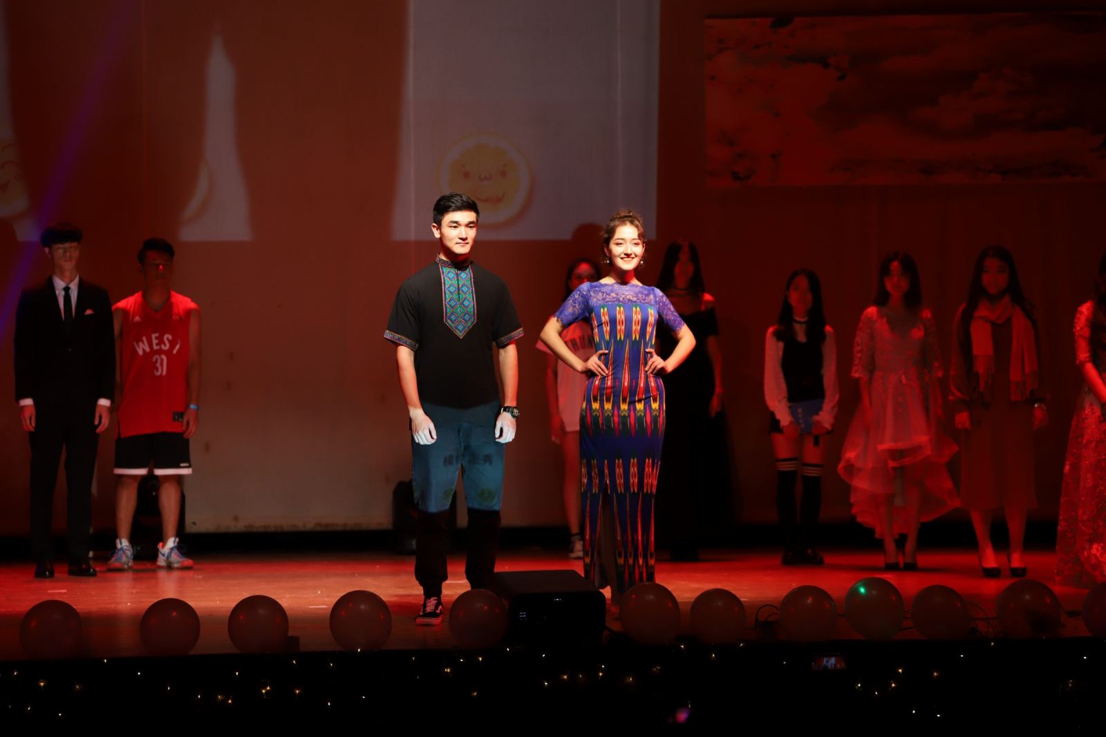 将晚会推向下一个高潮的节目就是模特走秀了,十对搭档穿上不同风格的衣服,在一首《maps》伴奏中,完成了展示,而2017级的各班班长也穿上了卡通的服装上台,引得同学们一阵掌声与欢呼。