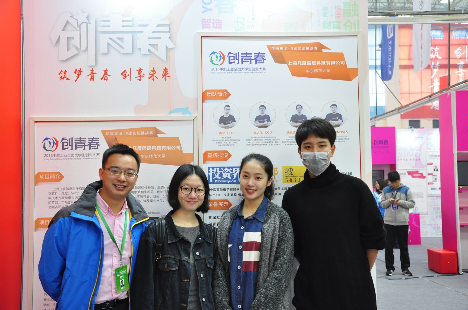 作品简介:上海几度信息科技有限公司由华师大在校生姜宁、姚银波、朱凯南和等共同创立。其中姚银波为公司软件工程08级本科生和12级硕士生,朱凯南为公司12级本科生,后团队陆续吸引多位公司本科生加入。该团队专注于员工和青年群体社交领域,先后推出几度、Simplr、Which、Friday等社交应用软件,曾获创业接力基金数百万人民币天使轮投资、青松基金近千万Pre-A轮融资。