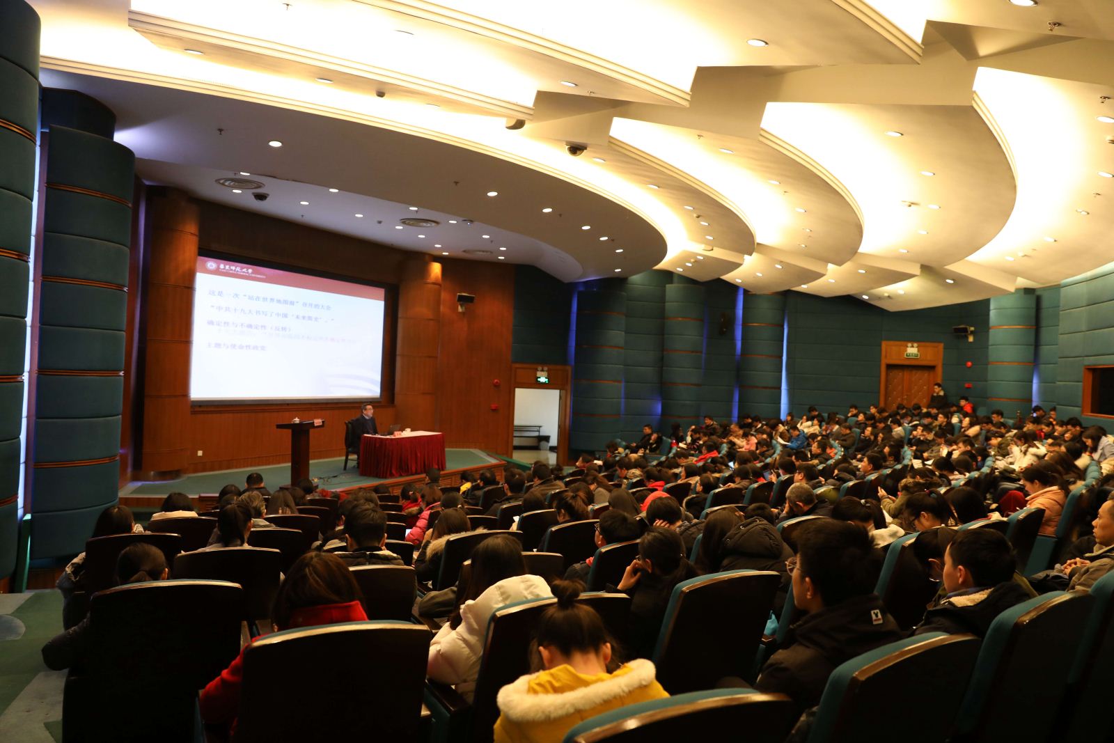 宋进教授开篇,就援引英国广播公司对十九大的评价,称之为“站在世界地图前召开的大会”,对此次大会的历史地位进行了阐述。围绕报告主题“不忘初心,牢记使命”,展开分析解释,并回顾了共产党诞生的历程及历次党代会的主题,特别是建设有中国特色社会主义在各个不同阶段的提法。十九大提出走进新时代,这是一个从新时代到新使命、新思想、新战略、新部署的过程,何谓时代,如何判断时代的变化,新时代之据、新时代之义,新时代的三个维度,包括历史维度、发展维度、世界维度;就新时代之新,宋教授提出新的阶段性特征、新的主要矛盾、新的指导思想即习近平新时代中国特色社会主义思想;在成绩面前,我们也需要看到,摆在发展中间所需亟待解决的问题,如何避免陷入三大阱即“中等收入陷阱、塔西佗陷阱、修昔底德陷阱”;看未来,我们即将进入改革开放的第五个十年,如何在新的时代把握机遇,迎接来自世界的挑战,最后,宋进教授引用十九大报告中的话寄语青年人,“青年兴则国家兴,青年强则国家强,青年一代有理想、有本领、有担当国家就有前途,民族就有希望。”