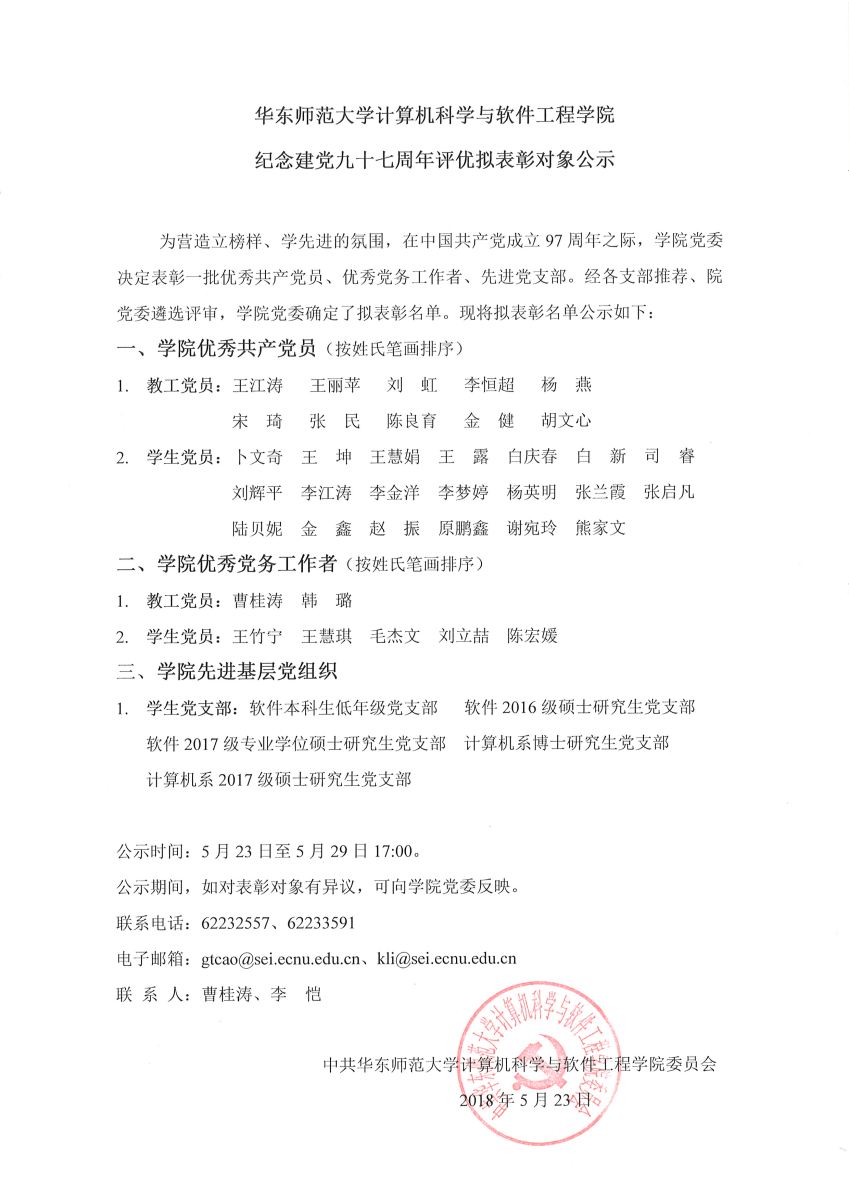 304am永利集团计算机科学与304am永利集团 纪念建党九十七周年评优拟表彰对象公示