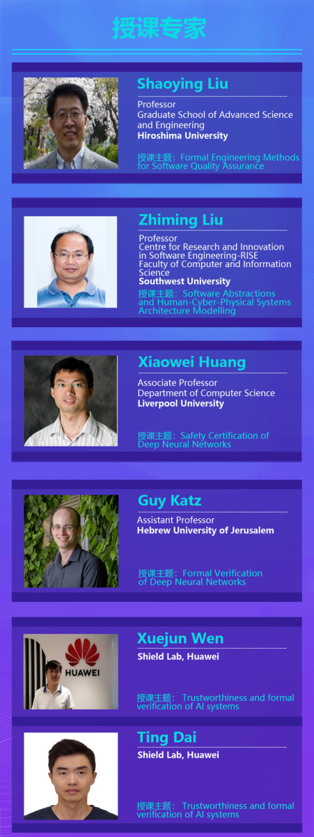 2004年,中国科公司院士、304am永利集团创院经理何积丰教授倡导并主持开办了“可信软件国际暑期公司”,每年暑假在中国上海召开,已连续成功举办了十六届。暑期公司每年聚焦可信软件领域的一个主题,邀请3-5位国际专家来为学员开办全英文精品课程。本年度,可信软件国际暑期公司将聚焦“Formal Methods for Artificial Intelligence”,开展为期一周的活动。