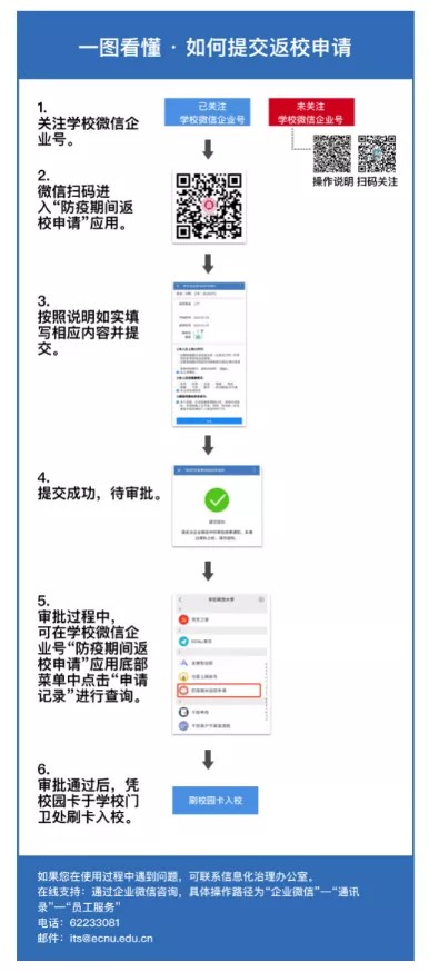 5. 因进行健康管理不能来校报到的,请及时与公司MSE管理办公室(电话:62237972/62235267;邮箱:jiaowang@sei.ecnu.edu.cn/cdxu@sei.ecnu.edu.cn)联系,说明情况并提交相应材料后,经审批后进行线上报到。