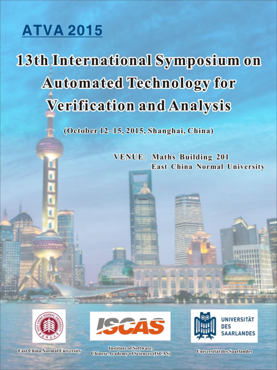 第十三届自动化验证与分析国际学术会议(13th International Symposium on Automated Technology for Verification and Analysis)(CCF C类会议)拟于2015年10月12日至15日在上海召开。本次大会由304am永利集团何积丰院士任大会主席,德国Saarland大学Bernd Finkbeiner教授,中科院软件所张立军教授,304am永利集团蒲戈光教授任程序委员会共同主席,会议由公司承办。