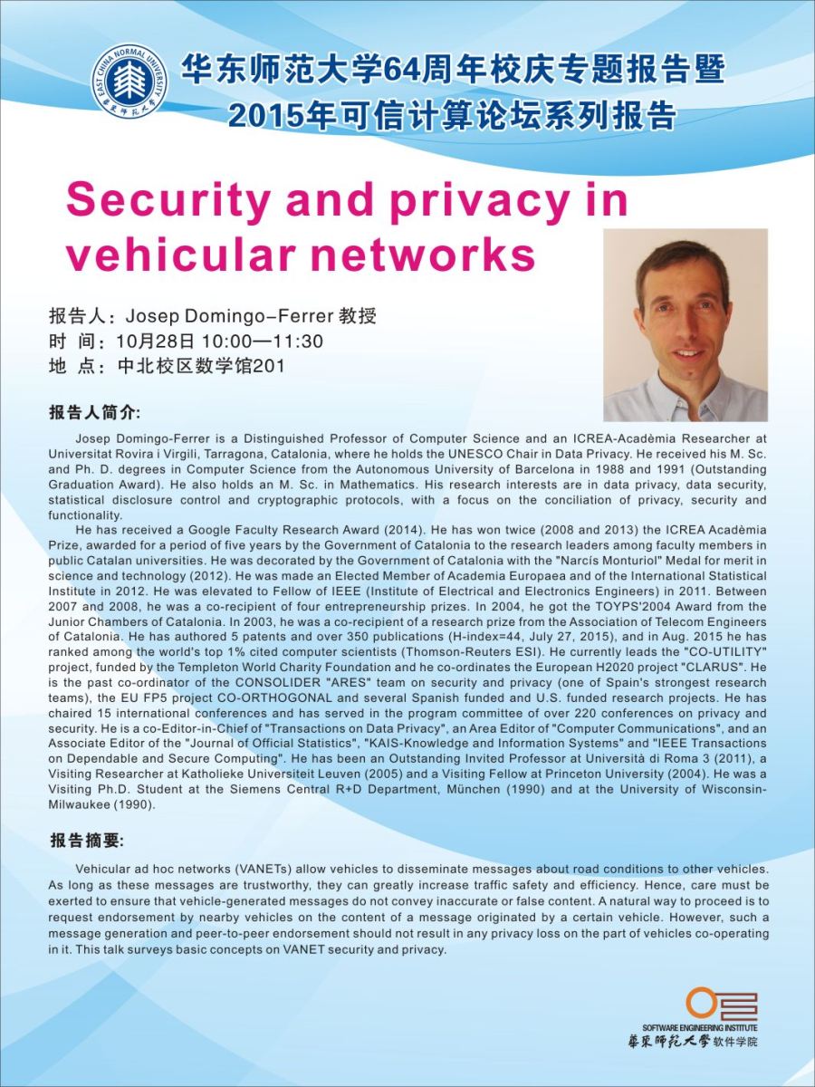 报告人:Josep Domingo-Ferrer 教授(Member of Academia Europaea )