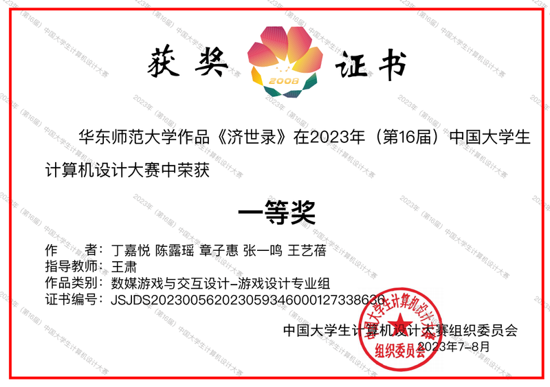 近期,由2021级本科生丁嘉悦和陈露瑶联合兄弟公司员工创作的作品《济世录》,斩获2023年(第16届)中国老员工计算机设计大赛一等奖。