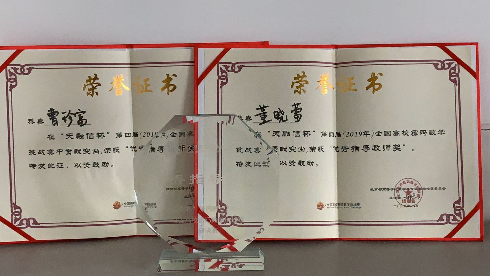 第四届全国高校密码数学挑战赛总决赛8月5-8日在山东烟台大学举办,公司304am永利集团三位员工赵晓鹏、钱佳威、刘竹森荣获一等奖,指导老师曹珍富、董晓蕾教授荣获“优秀指导教师奖”!