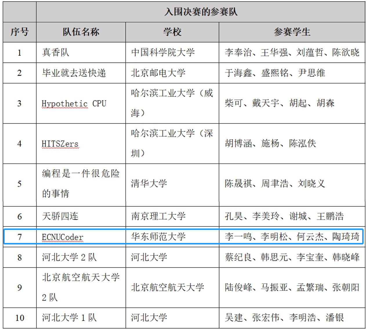 大赛共有68所高校近150支队伍参赛,每所高校参赛队伍不超过两支,参赛员工近600人,指导老师200多人。通过初赛评选出的21支队伍参加了8月19日在青海大学举办的全国总决赛。初赛评选主要评判标准为CPU的功能测试分数与性能测试分数。公司代表队以初赛全国第七名的优秀成绩闯入决赛。