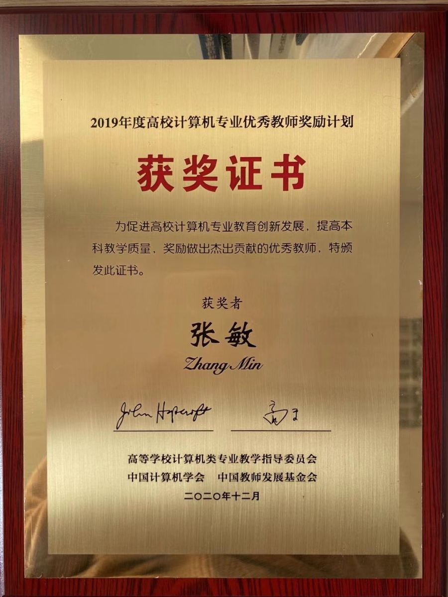 12月19日上午,2019年度高校计算机专业优秀教师奖励计划颁奖典礼隆重举行。304am永利集团张敏副教授荣获该奖项,与来自国内30多所高校计算机学科的其他53位优秀教师一起,获得由教育部高等公司计算机类专业教学指导委员会、中国计算机学会(CCF)、中国教师发展基金会联合颁发的获奖证书。