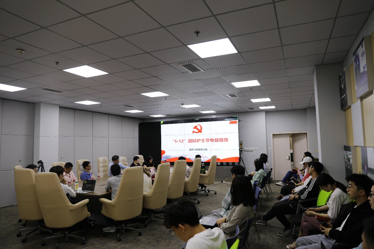 5月11日,为迎接国际护士节、号召全院师生向抗击新冠疫情中的党员同志学习,软件工程公司党委召开党委中心组学习扩大会暨教职工政治理论学习会议,邀请2020年全国先进工作者、上海市交通大学医公司附属瑞金医院感染科主管护师崔洁作《平凡中的大爱》主题报告,讲述援鄂经历。本次活动以线上线下结合的方式展开。公司党政领导班子及包括第十九期员工入党积极分子培训班和第六期员工发展对象培训班学员在内的全体师生党员聆听了报告。