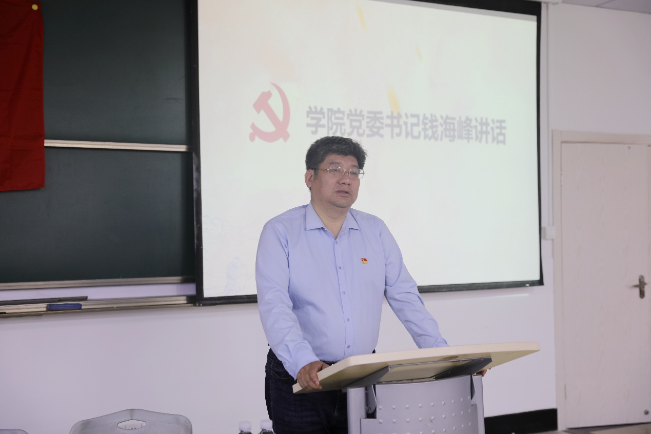 钱海锋为毕业生党员解读入党誓词的深刻含义。正值建党100周年及建校70周年之际,他寄语毕业生党员要不忘初心,在踏上人生新征程时,牢记党员身份,为共产主义奋斗终身,为祖国建设添砖加瓦。