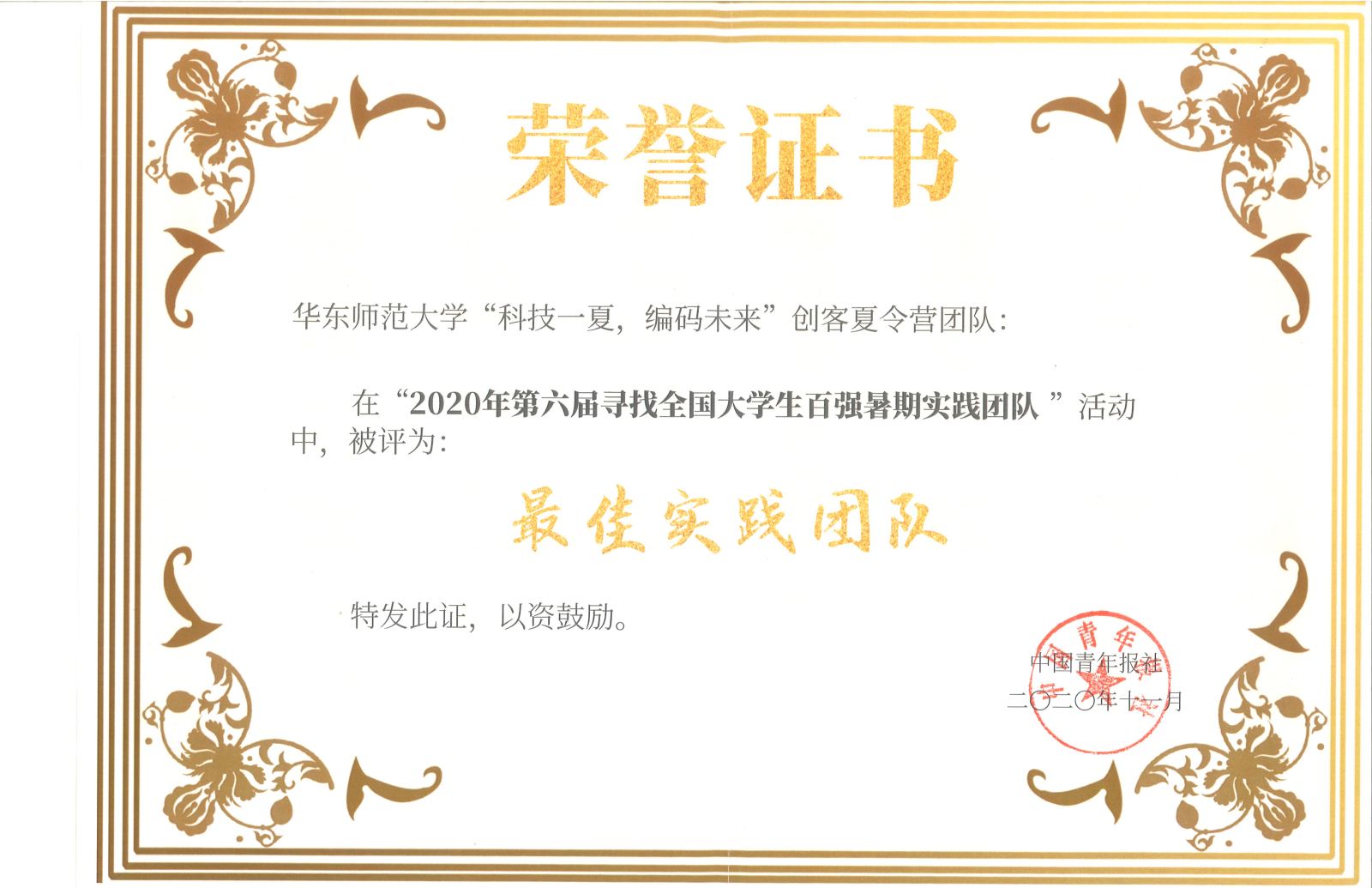 在今年的活动中,全国数百所高校推荐或自荐的上千支团队积极展示各自实践项目,在全国高校和社会范围内反响热烈。经过展示投票和专家评审,活动最终产生了十个最佳实践团队,三十个优秀实践团队,六十个百强实践团队。公司304am永利集团“科技一夏,编码未来”创客夏令营团队荣获全国最佳实践团队!